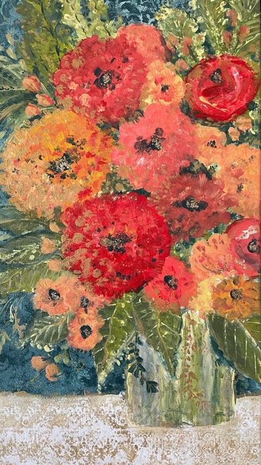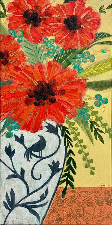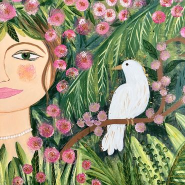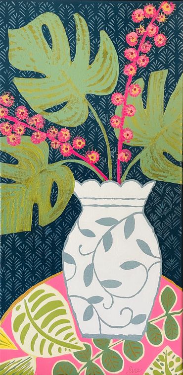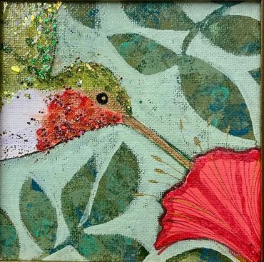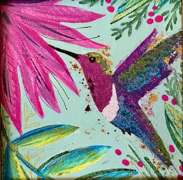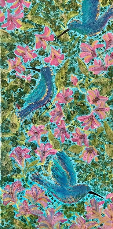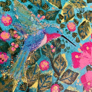 Lana's artwork is created in acrylic, using metallic embellishments to highlight the movement and luminosity of her subjects.